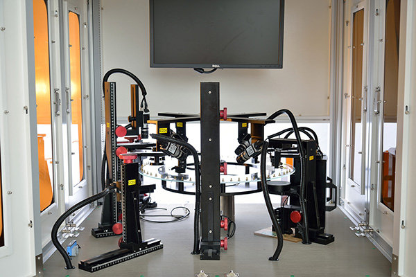 軸類零件自動檢測設備采用雙遠心光路,背光源照明,高分辨率麵陣CCD相機成像,並通過電動滑台定位,以及高精度圖像拚接,獲取全軸高質量圖像;係統通過智能區域定位、亞像素邊緣提取等算法獲得工件幾何形狀信息並進行統計分析與報告輸出。